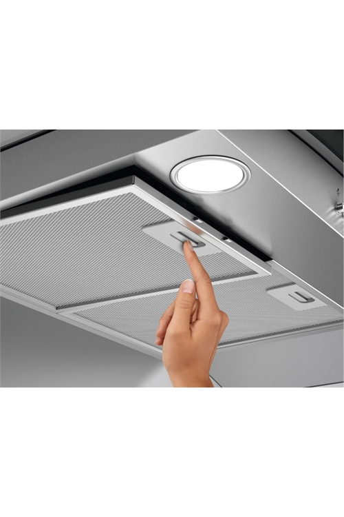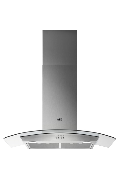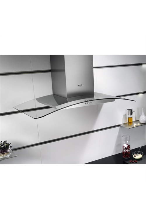 AEG DTB3953M 90cm Curved Glass Wall Chimney Hood, Mechanical Push Buttons, LED Lighting, 3 Speeds,