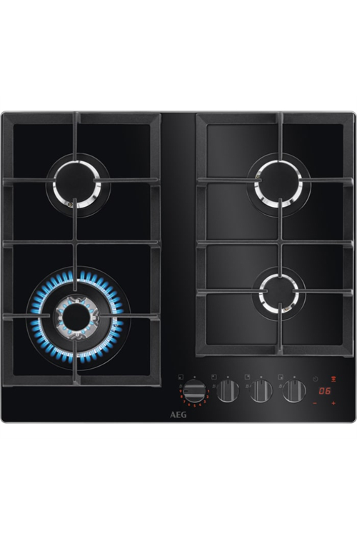 AEG HKB64450NB 60cm Flamelight, Gas on glass hob, StepPower controls, LED display with minute minde