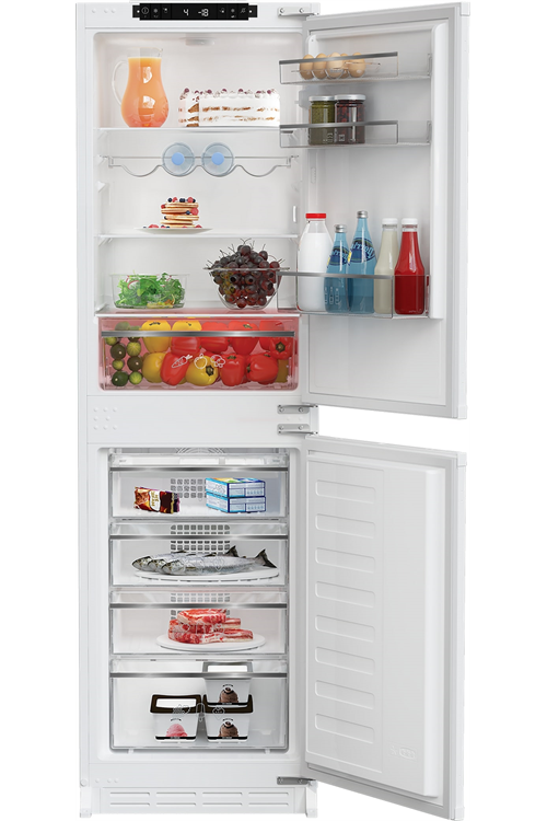 The integrated Blomberg KNE4564EVI 54cm white 50/50 frost-free fridge freezer has many storage choices and can accommodate up to 13 bags of groceries. Also, the frost-free function eliminates the need for you to spend time manually defrosting the appliance again.