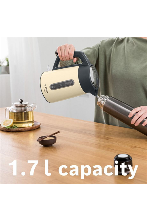 Whether you're replacing an old kettle or furnishing a new home, the Bosch Designline TWK4P439GB Cream 1.7 litre jug kettle will make a great addition to any home, especially for those that love hot beverages.