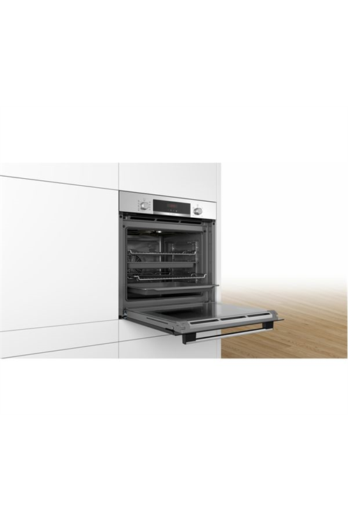 The Bosch Serie 4 HBS573BS0B stainless steel built-in electric single oven will have no problem taking care of all your oven cooking needs with its spacious cavity and automatic cooking functions