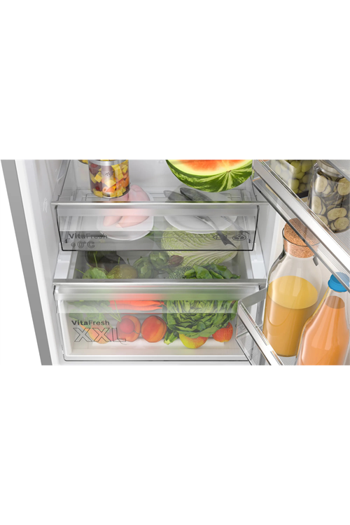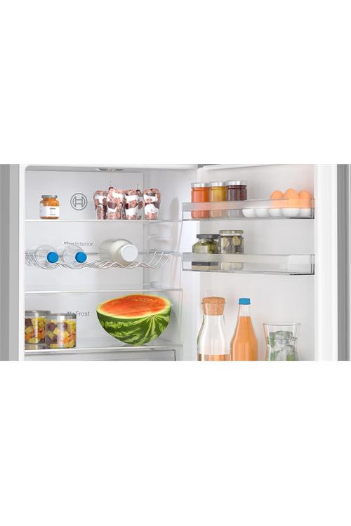 With a total capacity of 321 litres, the Bosch Serie 4 KGN362LDFG 60cm stainless steel 70/30 frost-free fridge freezer provides more than enough room for your family's goods. Additionally, there are two independent cooling circuits, so you may separately regulate the temperature of the refrigerator and the freezer.