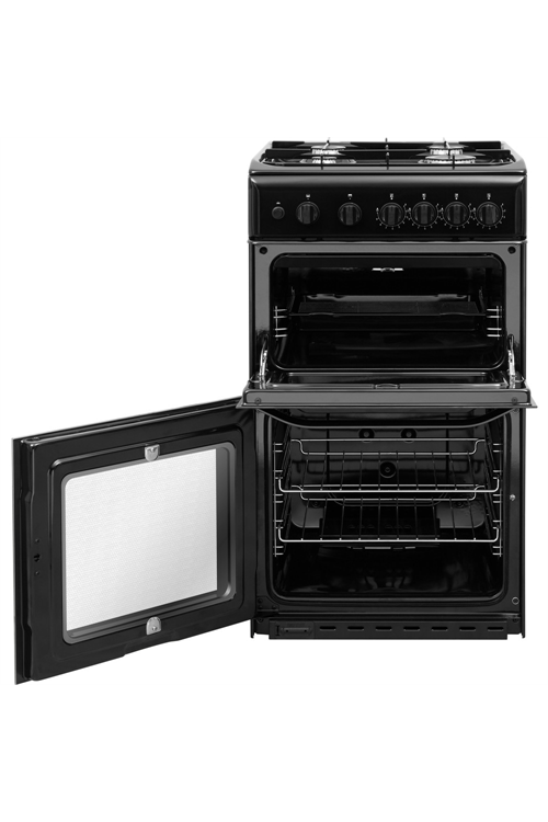 The Hotpoint Cloe HD5G00KCB 50cm black twin cavity gas cooker is a perfect addition to smaller households with less kitchen space. Finished in a modern black, this freestanding model will ensure your kitchen experience runs smoothly.