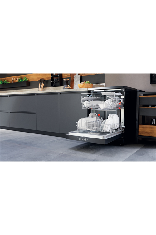 Purchase the Hotpoint HFC3C26WCBUK Black 14 Place Settings Dishwasher for a powerful and stylish machine that will elevate your kitchen with its sleek black exterior.