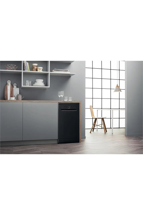 Buy the Hotpoint HSFE1B19BUKN Black Slimline 10 Place Settings Dishwasher to enjoy crystal-clean glasses, gleaming forks, and pristine plates in a flash. Available for delivery across Cardiff.