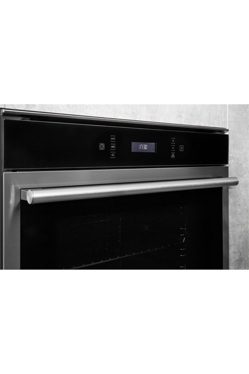 Prevent the oven door slamming shut thanks to the soft-closing hinges, preventing injury and damage to your appliance. Additionally, the quadruple glazed window means more heat stays inside the oven.