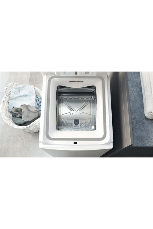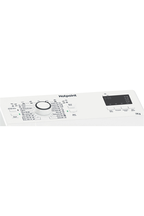 This Hotpoint washing machine has a sleek and attractive design in a classic white finish, making it an ideal addition to any modern household. Its top-loading design not only saves space but also makes loading and unloading clothing simple, and its simple controls ensure that you can simply run the machine.