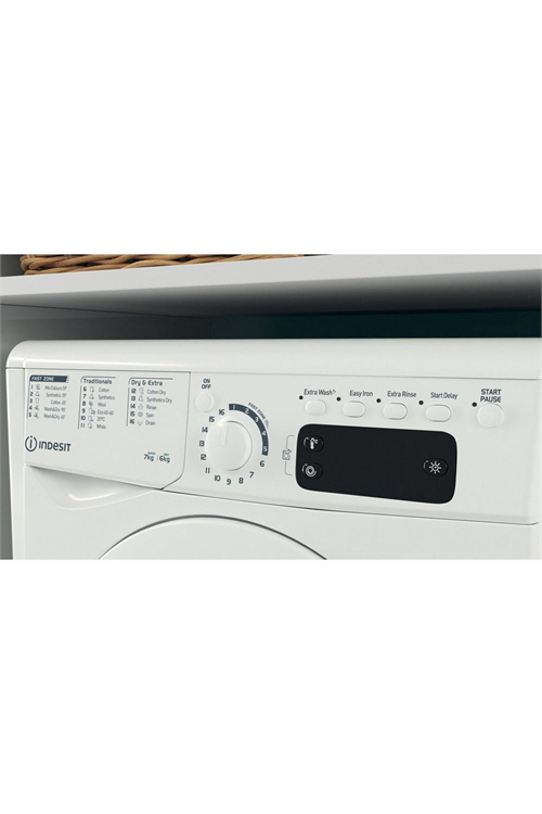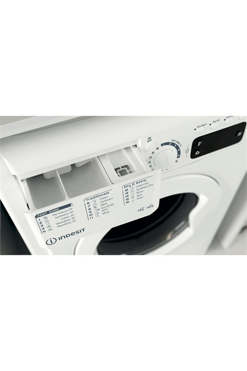 The Indesit EWDE761483WUK combines efficient washing and drying in one sleek, space saving appliance, perfect for busy households. With a clean white design and a generous 7kg wash and 6kg dry capacity, this washer dryer delivers dependable laundry results while making your routine more streamlined.