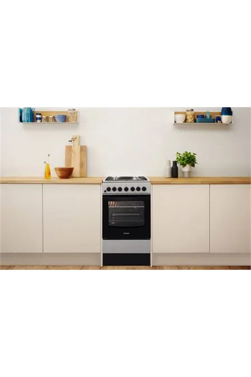 The Indesit IS5G4PHSS 50cm Inox Single Oven Dual Fuel Cooker is equipped to give you all the benefits of gas and electric cooking in a single appliance. It comes with an A energy rating and a 1-year labour, and 10-year parts warranty.