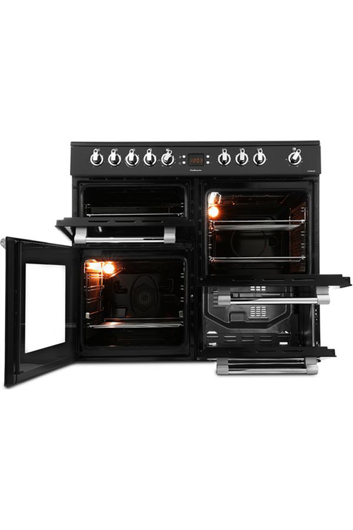 The leisure Cookmaster CK100210K will spice up your culinary life, offering plenty of flexibility with its two generously sized ovens, dedicated grill and five-zone ceramic hobs.