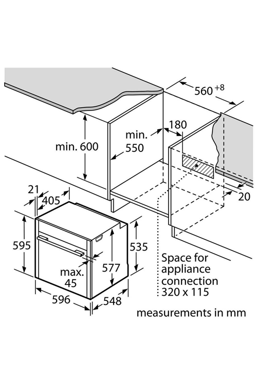 • Niche dimension (hxwxd): 585 mm - 595 mm x 560 mm - 568 mm x 550 mm