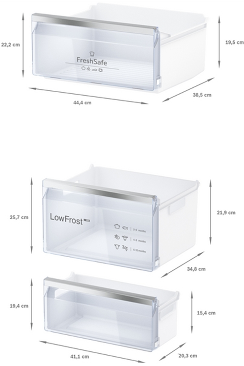 Low Frost technology decreases the amount of moisture that enters the freezer compartment, minimising the amount of frost that builds on the freezer walls and shelves. This increases the duration between defrosting processes, making the freezer more convenient and easier to maintain.
