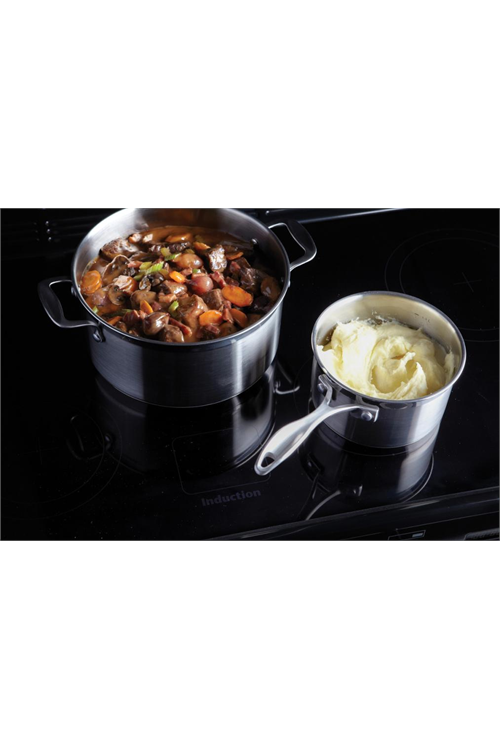 Complete with a spacious five zone induction hob, you'll have the versatility to boil, fry and sauté multiple dishes effortlessly. Roast potatoes in the main oven, bake brownies in the tall second oven, grill chicken and boil peas all at the same time!