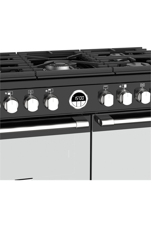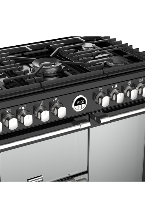The Stoves’ S900DF ranges come fitted with a five-burner gas hob that features a wok burner for making delicious stir-fries. As well as the wok burner in the centre there is also one small, two medium, and one large burner arrayed around it in a windmill arrangement.